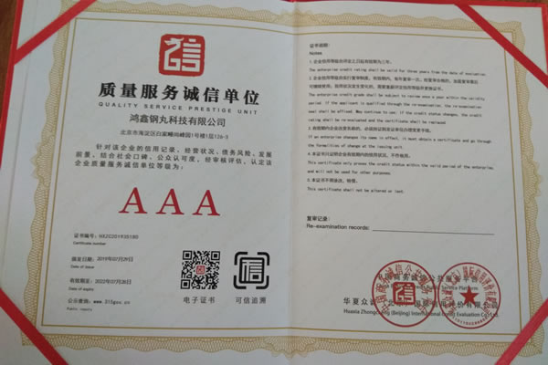 公司所有產品均通過ISO9001 **質量認證,2014年更獲得了第三屆中國金屬磨料行業(yè)具有影響力品牌-華尊獎